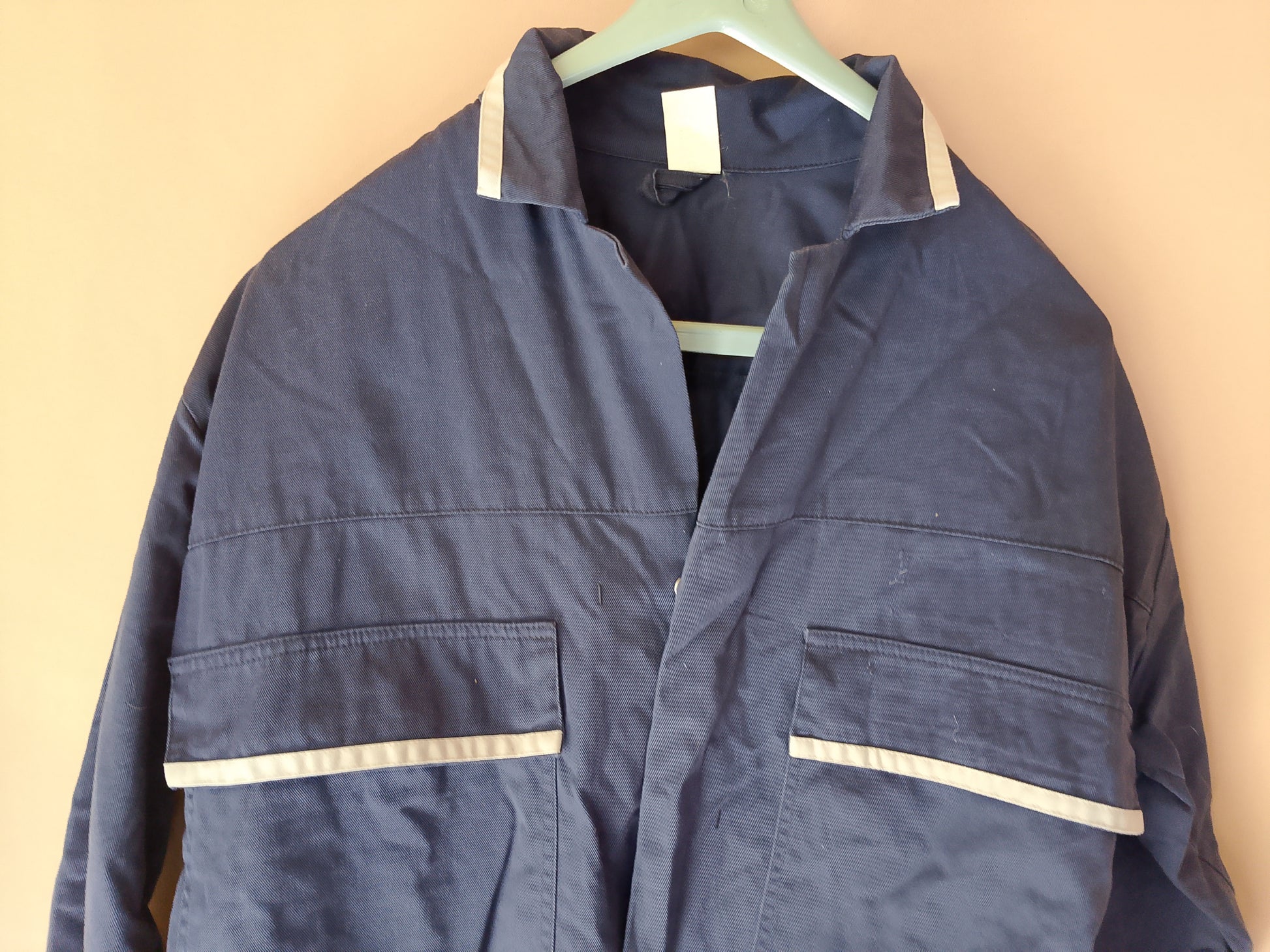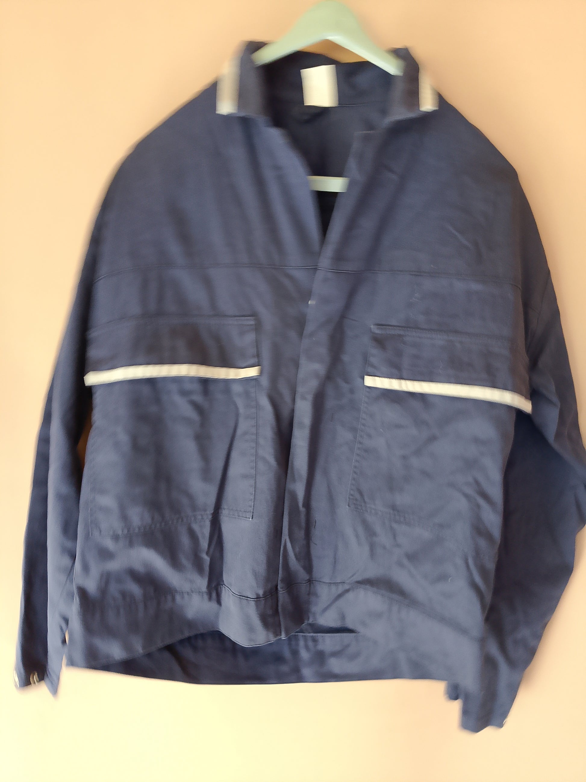 Deși este un produs la mâna a doua, jacheta este în stare bună și gata să fie folosită. Design-ul său clasic cu buzunare generoase este ideal pentru a-ți ține la îndemână uneltele și accesoriile de care ai nevoie. Este o alegere practică și economică, perfectă pentru mecanici, constructori sau pentru orice tip de muncă manuală care necesită un plus de protecție și vizibilitate.