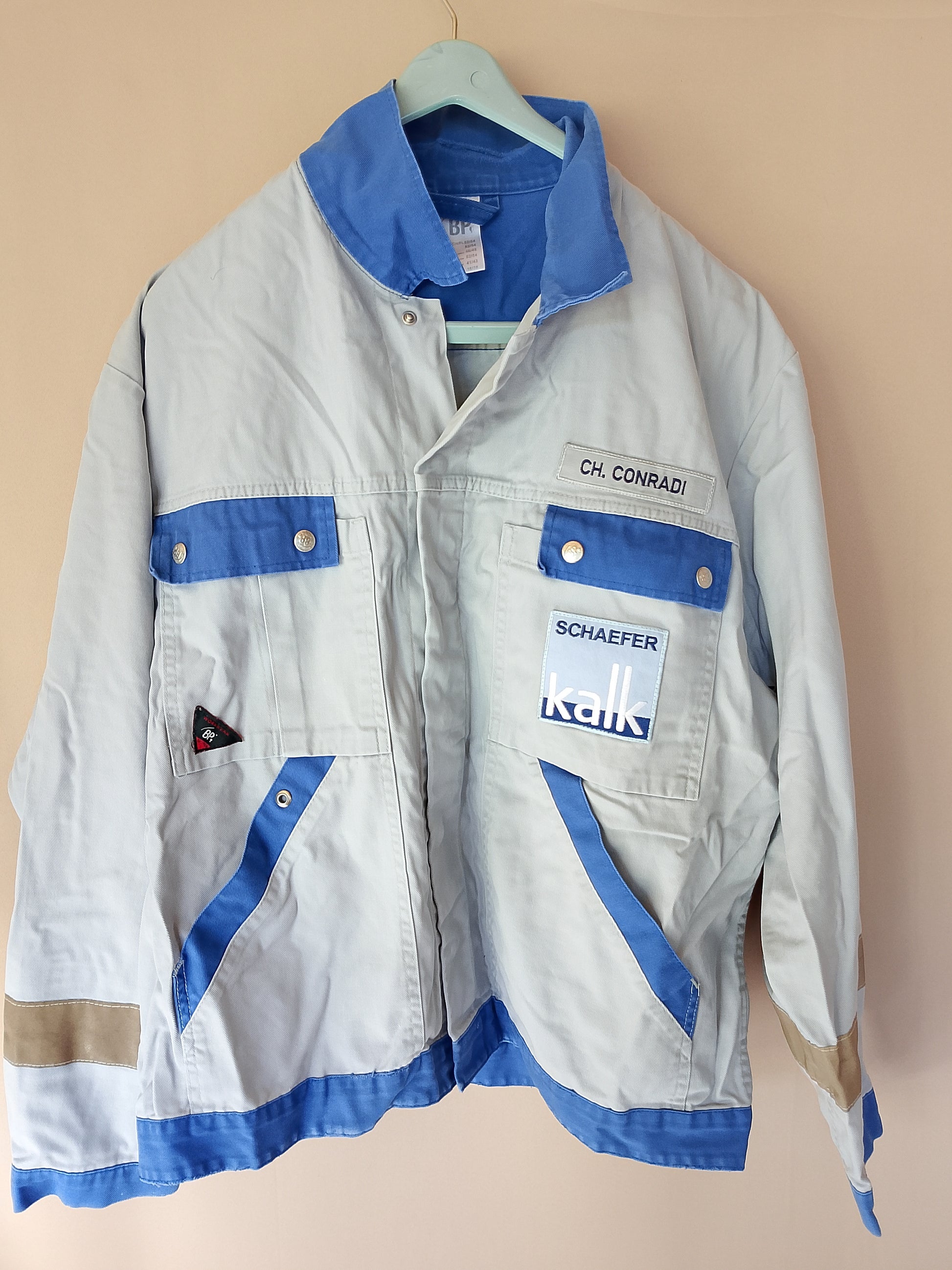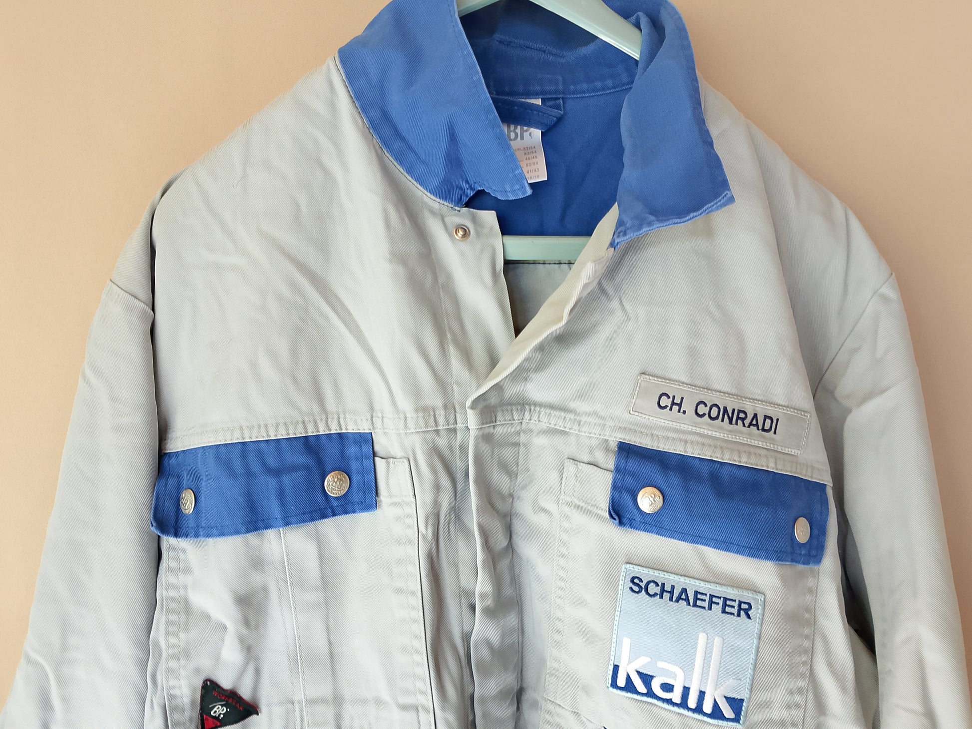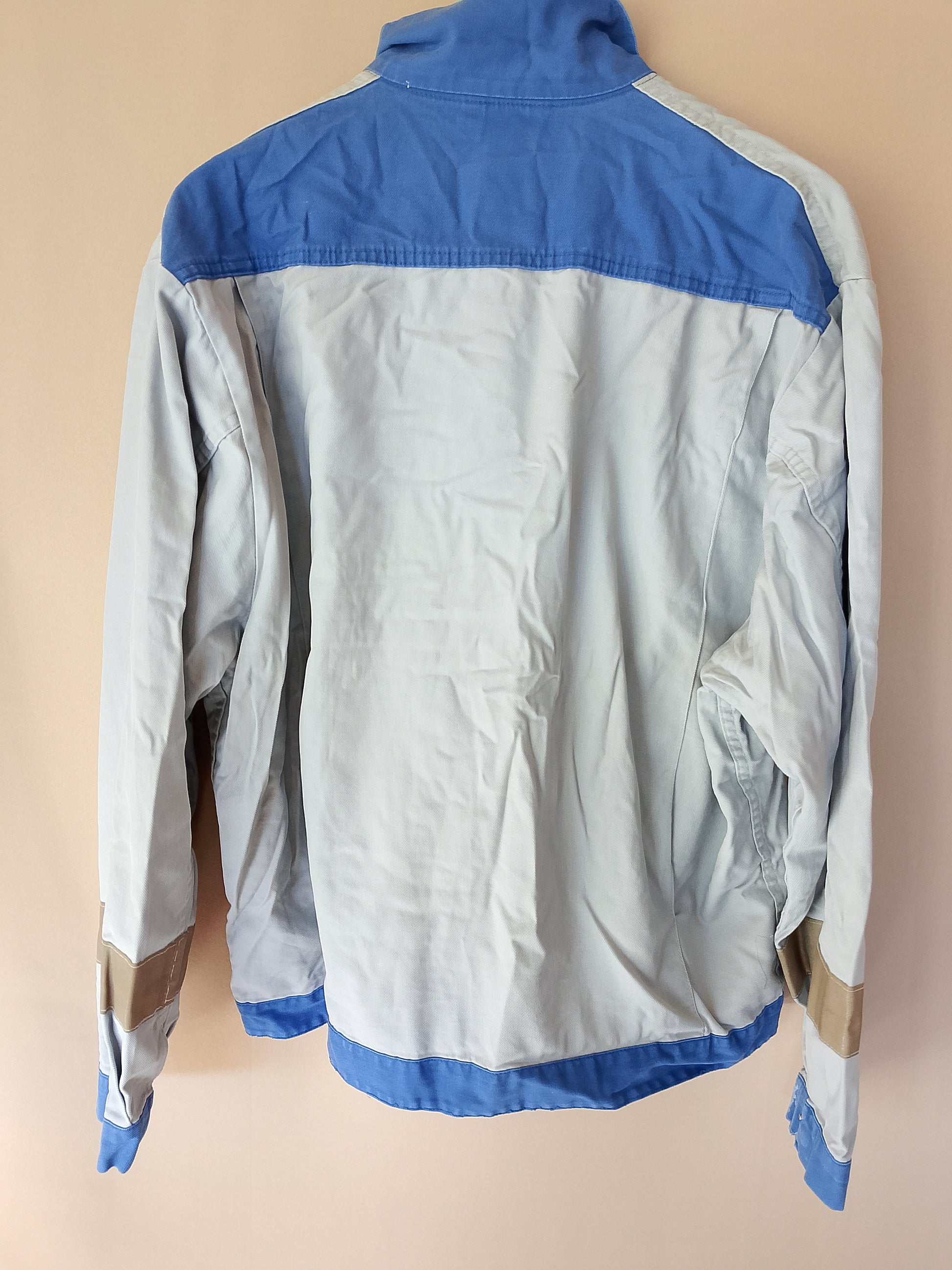Această jachetă la mâna a doua este într-o stare excelentă și încă reflectă standardele înalte de producție. Designul său în nuanțe de alb și albastru, cu benzi reflectorizante maronii la încheieturi, este nu doar elegant, ci și funcțional, oferind vizibilitate sporită. Cu buzunare practice și un material rezistent la uzură, această jachetă este perfectă pentru orice mecanic, constructor sau pasionat de proiecte de tip "do it yourself" care caută un echipament fiabil și la un preț accesibil.