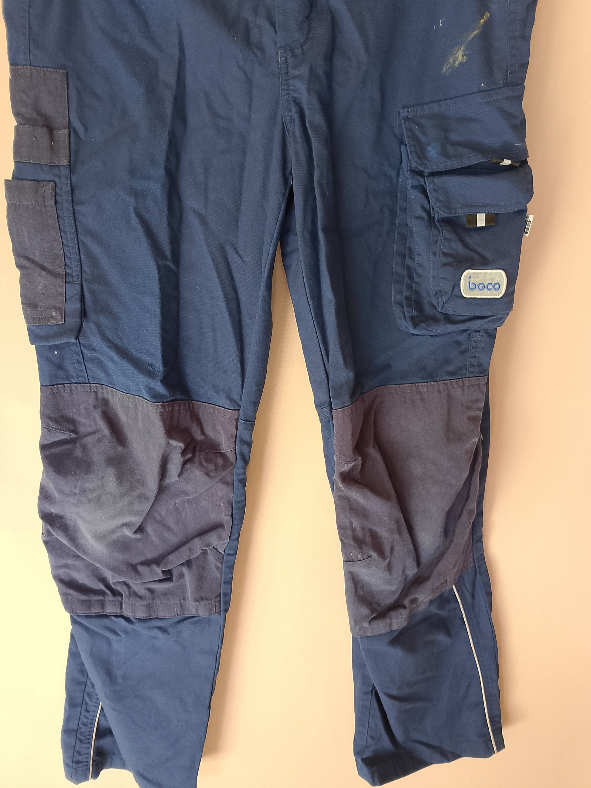 Pregătește-te pentru muncă cu acești pantaloni profesioniști de la CWS-boco. Cu un design tip "cargo", aceștia sunt dotați cu buzunare laterale practice pentru unelte. Culoarea albastru marin și întăriturile de pe genunchi atestă durabilitatea și rezistența la uzură. Eticheta de pe buzunarul lateral confirmă autenticitatea mărcii. Acești pantaloni sunt ideali pentru diverse activități de lucru. Deși sunt un produs second-hand, pantalonii se află în stare bună, fiind gata de utilizare.