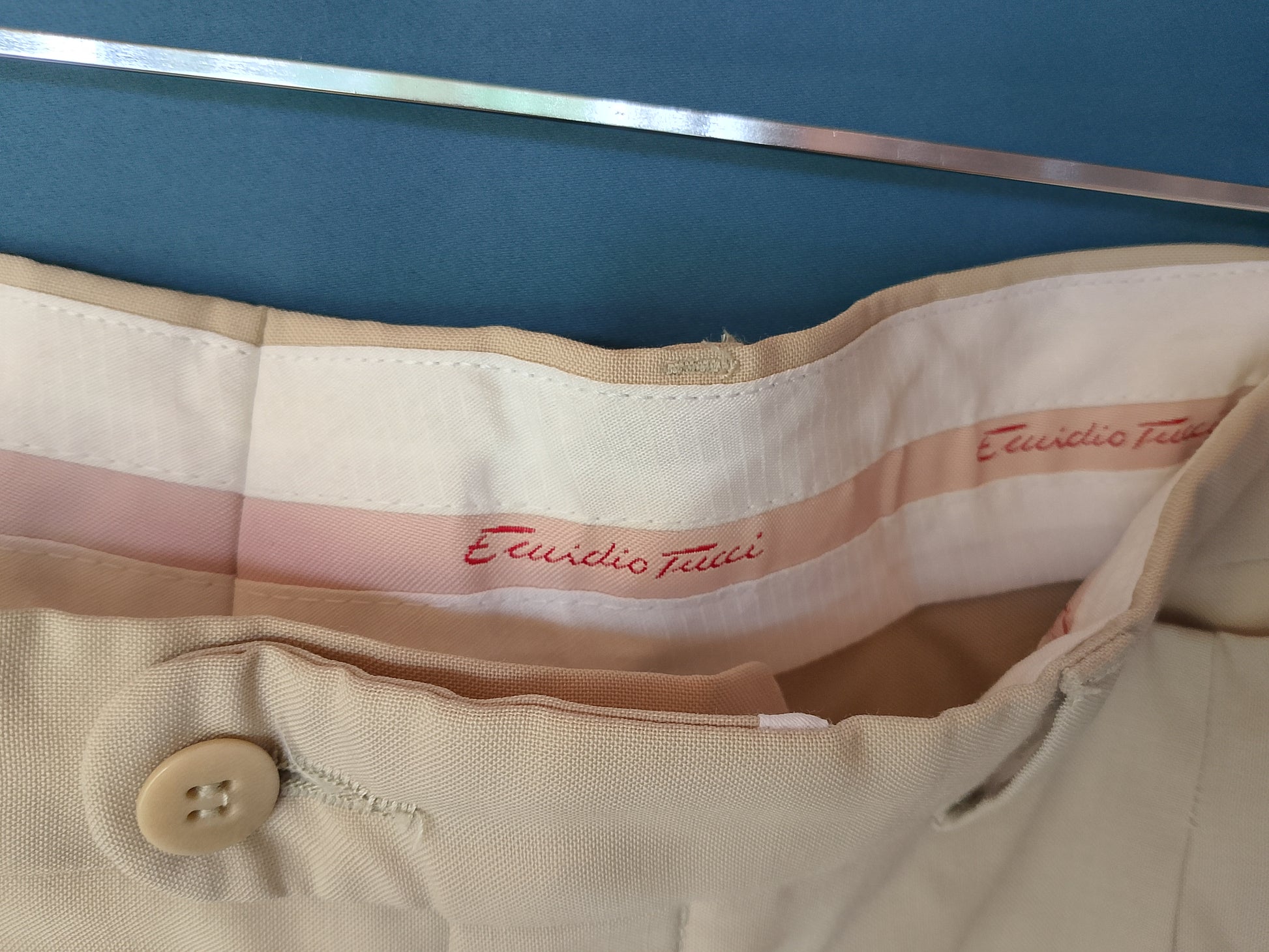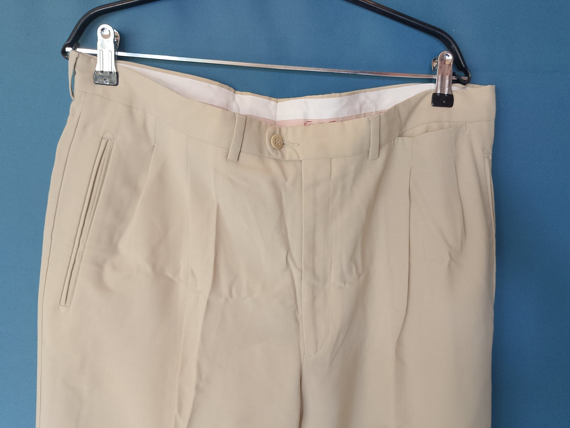 Pantaloni eleganți Eurdicio Tacci, bej, pentru bărbați, cu pliseuri, ideali pentru un look business-casual. . Marime talie 44cm.