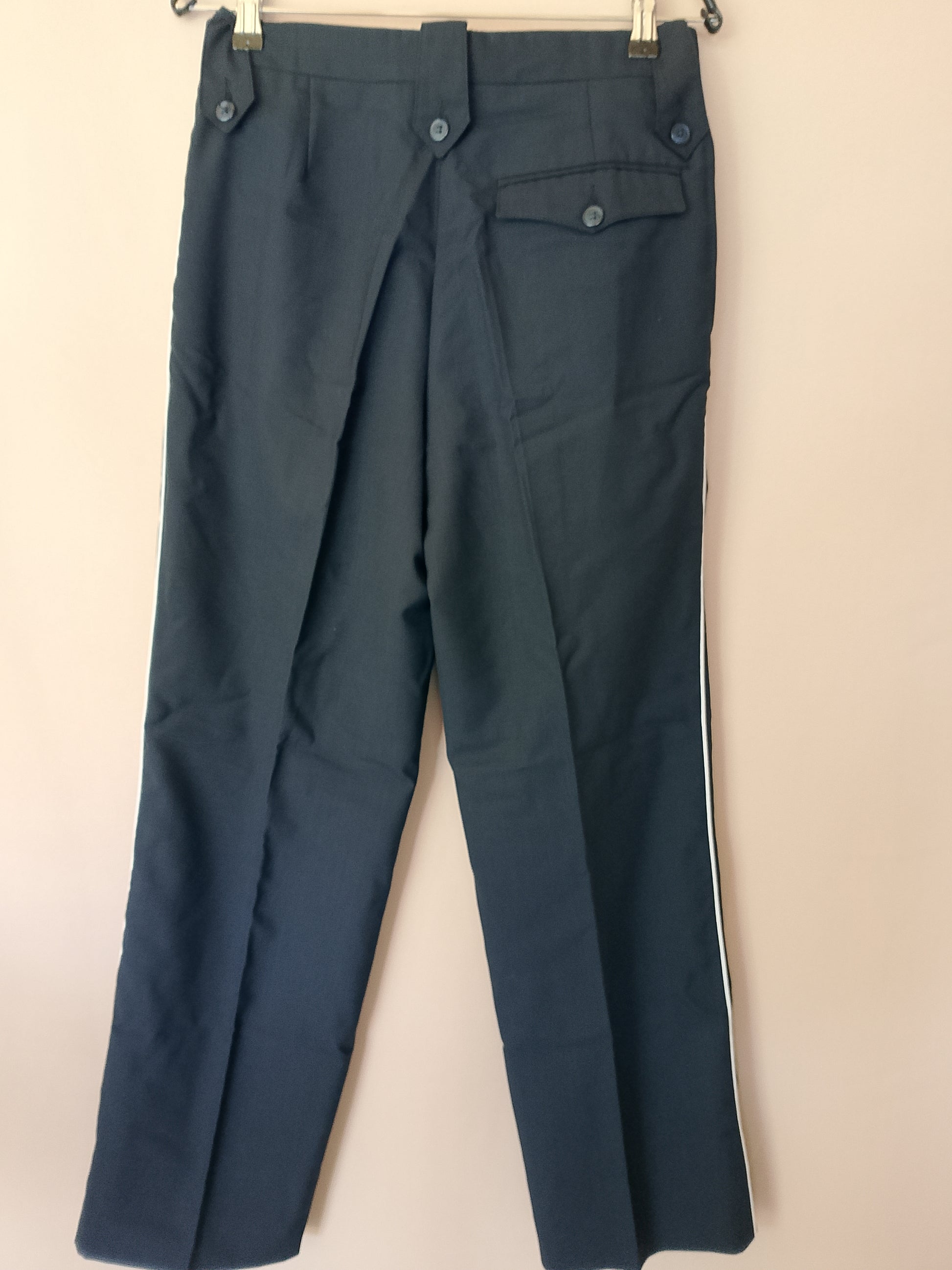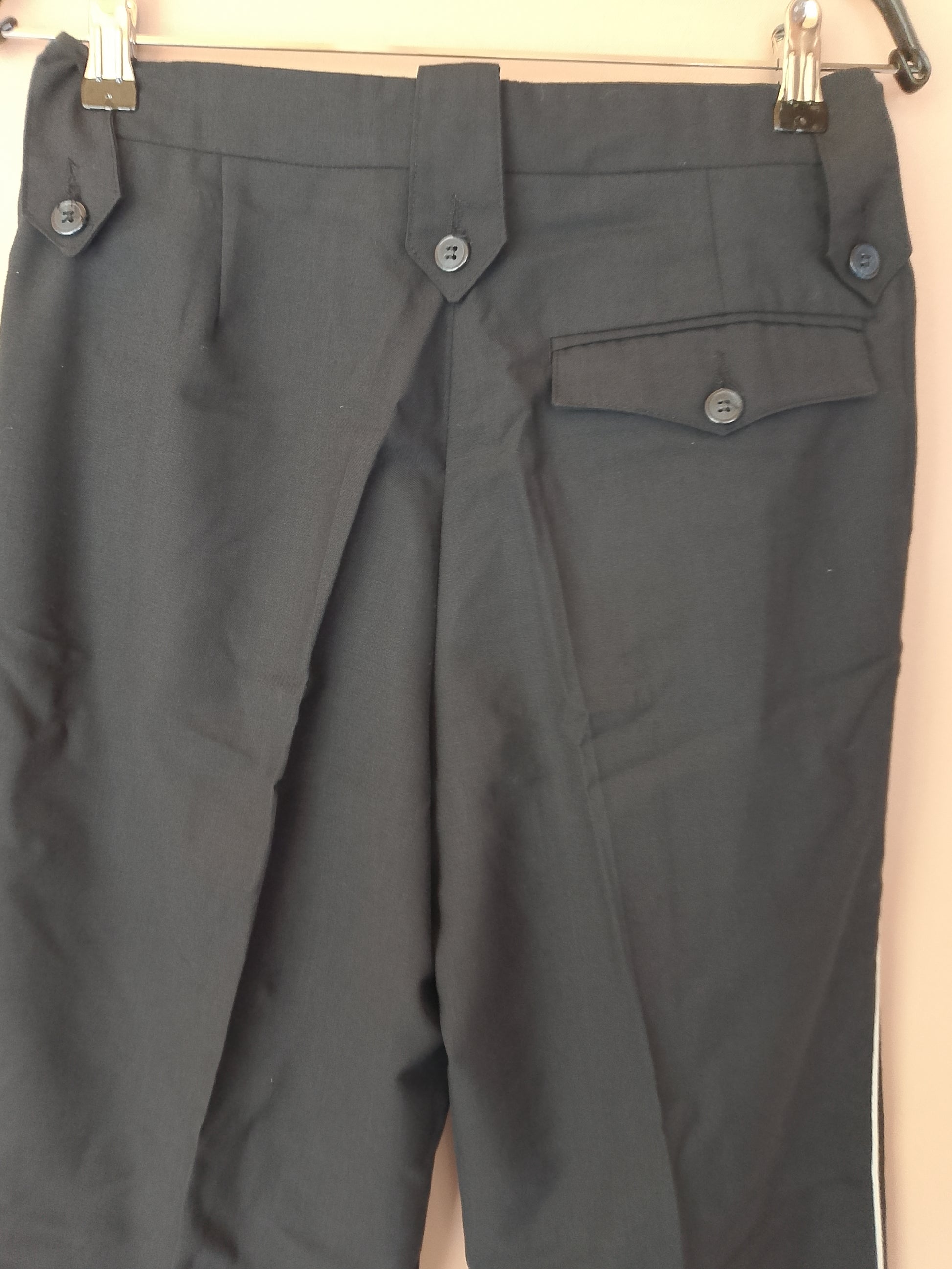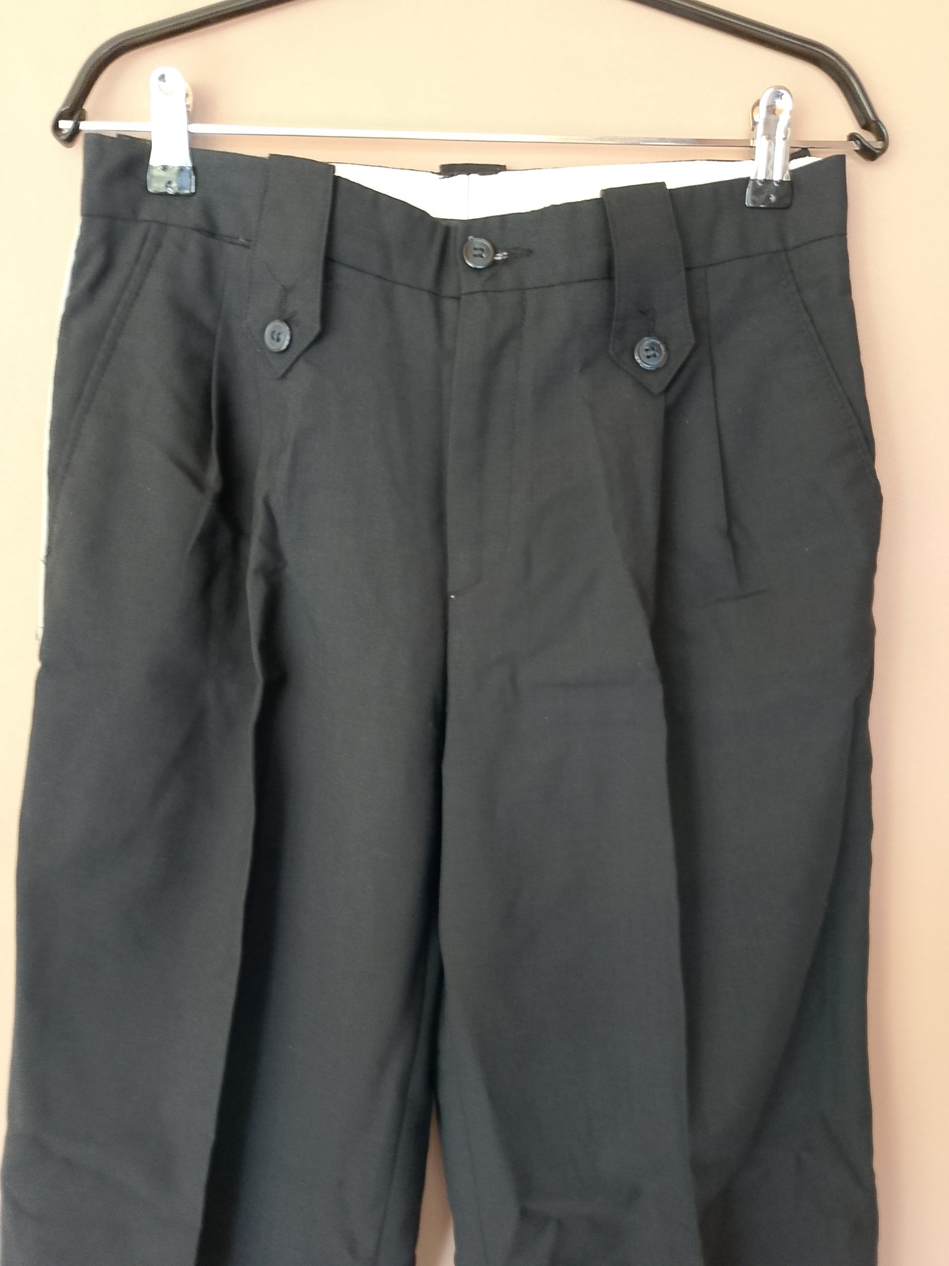 Acești pantaloni formali de culoare neagră, cu un design clasic și elegant, sunt o piesă vestimentară versatilă și atemporală. Fabricati dintr-un material de înaltă calitate, aceștia oferă un confort sporit și o cădere impecabilă. Sunt ideali pentru evenimente formale, ceremonii sau ca parte a unei uniforme. Starea produsului este nouă, fără urme de uzură, fiind o piesă excelentă pentru a completa orice garderobă.