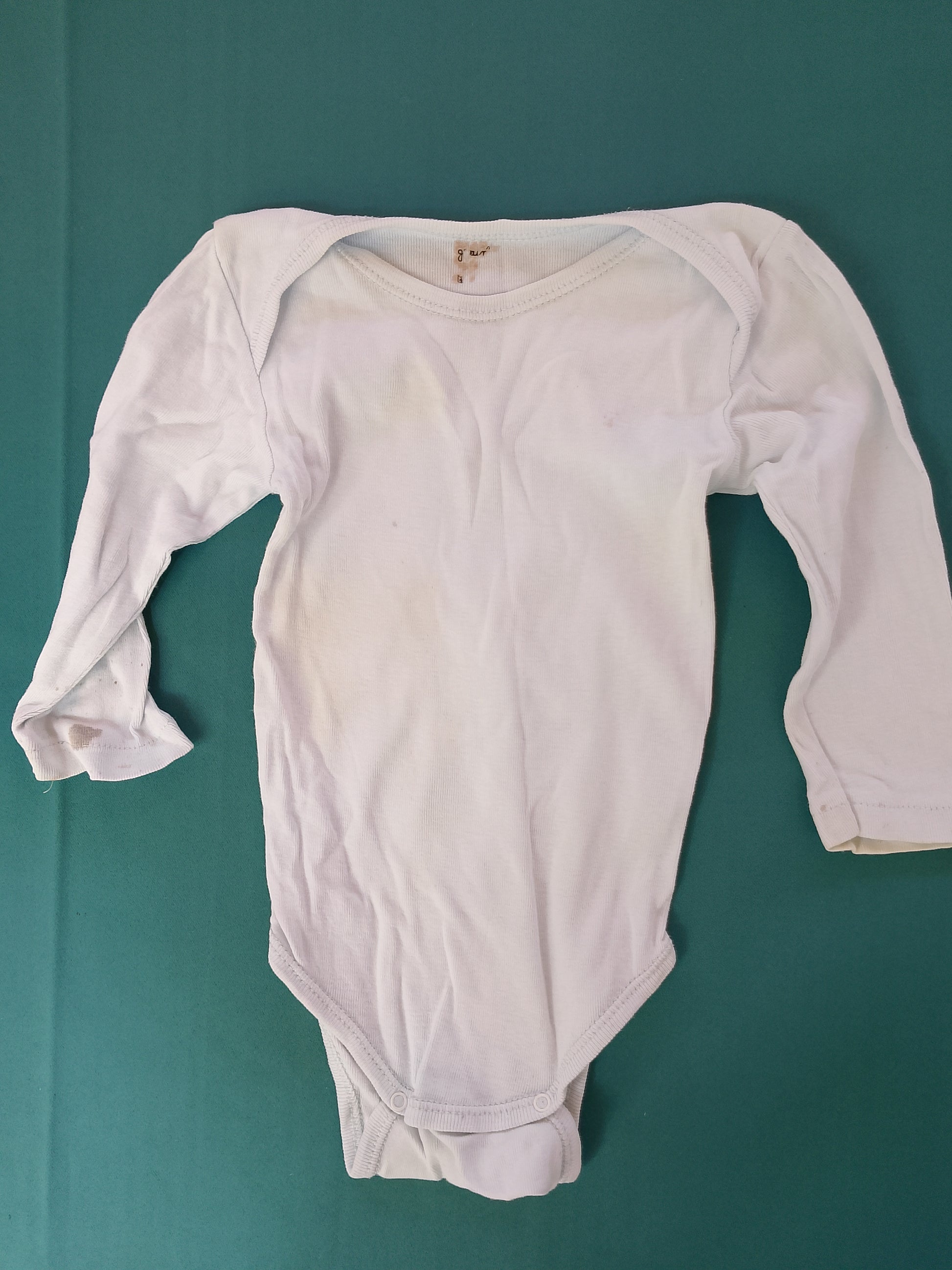 Asigură-i bebelușului tău o ținută confortabilă și versatilă cu această salopetă albă cu mânecă lungă. Perfectă pentru a fi purtată singură în zilele mai răcoroase sau ca strat de bază sub alte hăinuțe, se adaptează oricărui anotimp. Fabricată dintr-un material moale și delicat, protejează pielea sensibilă a bebelușului și îi permite să se miște în voie. Culoarea albă, simplă și elegantă, o face ușor de asortat cu orice altă piesă vestimentară. Închiderea practică cu capse la baza piciorului face schimbarea scutecului o operațiune rapidă și fără bătăi de cap. Stare bună, gata de purtat!
