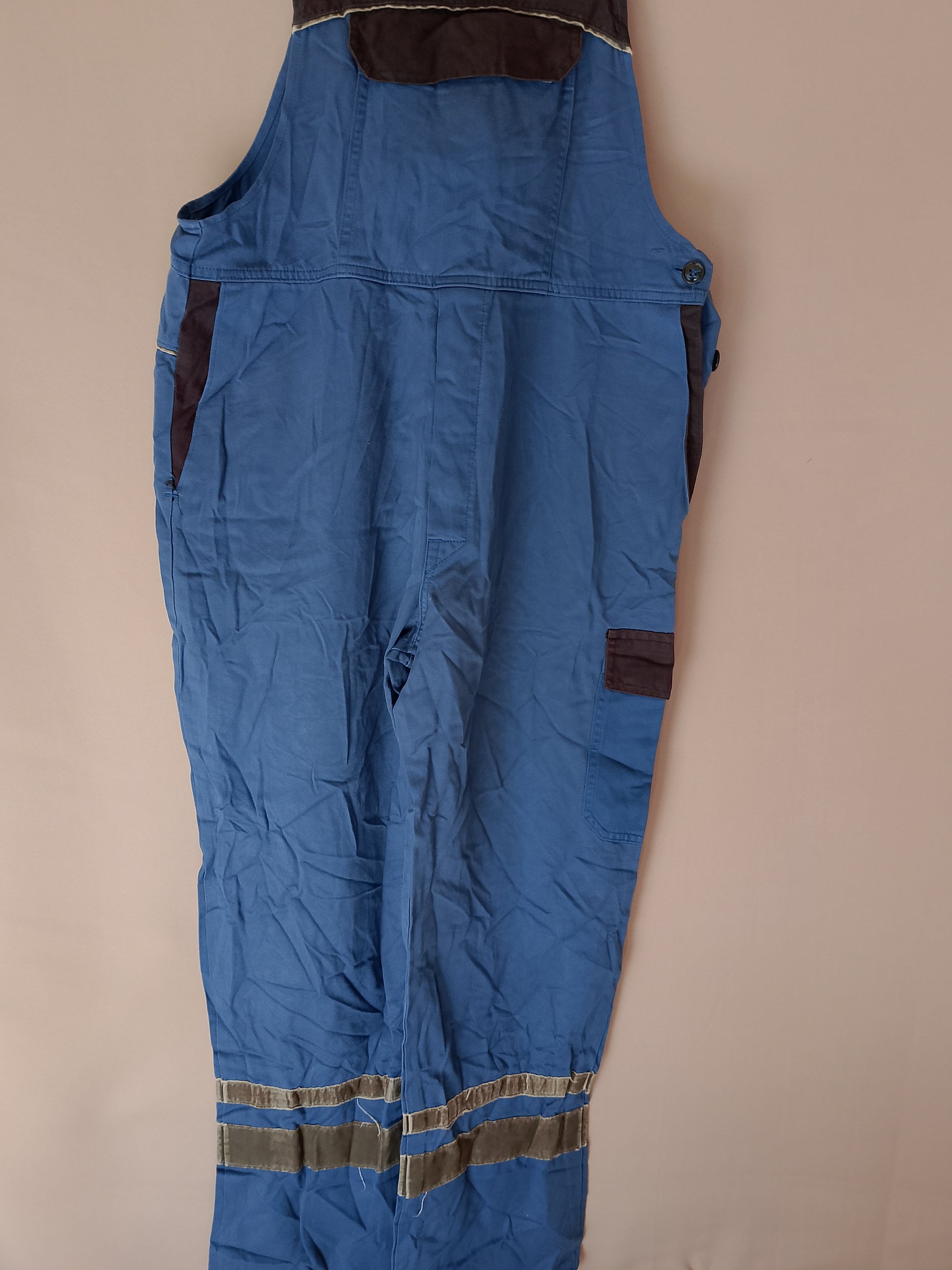 Această salopetă de lucru combină perfect durabilitatea cu funcționalitatea, fiind ideală pentru profesioniștii din construcții, mecanică sau alte domenii tehnice. Materialul rezistent, în culori complementare de albastru și maro închis, oferă o protecție sporită și o rezistență excelentă la uzură. Designul este gândit pentru a maximiza utilitatea, cu buzunare multiple pe lateral și la piept, perfecte pentru a ține uneltele și accesoriile esențiale la îndemână. În plus, banda reflectorizantă de la baza piciorului asigură vizibilitatea în condiții de lumină slabă. Un partener de încredere pentru cele mai solicitante sarcini.
