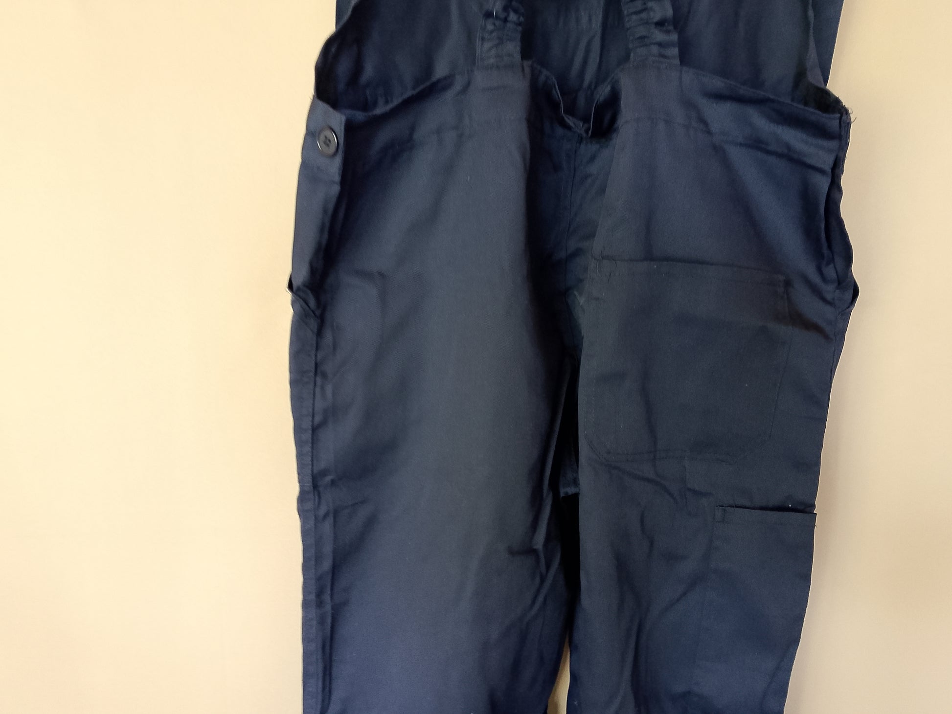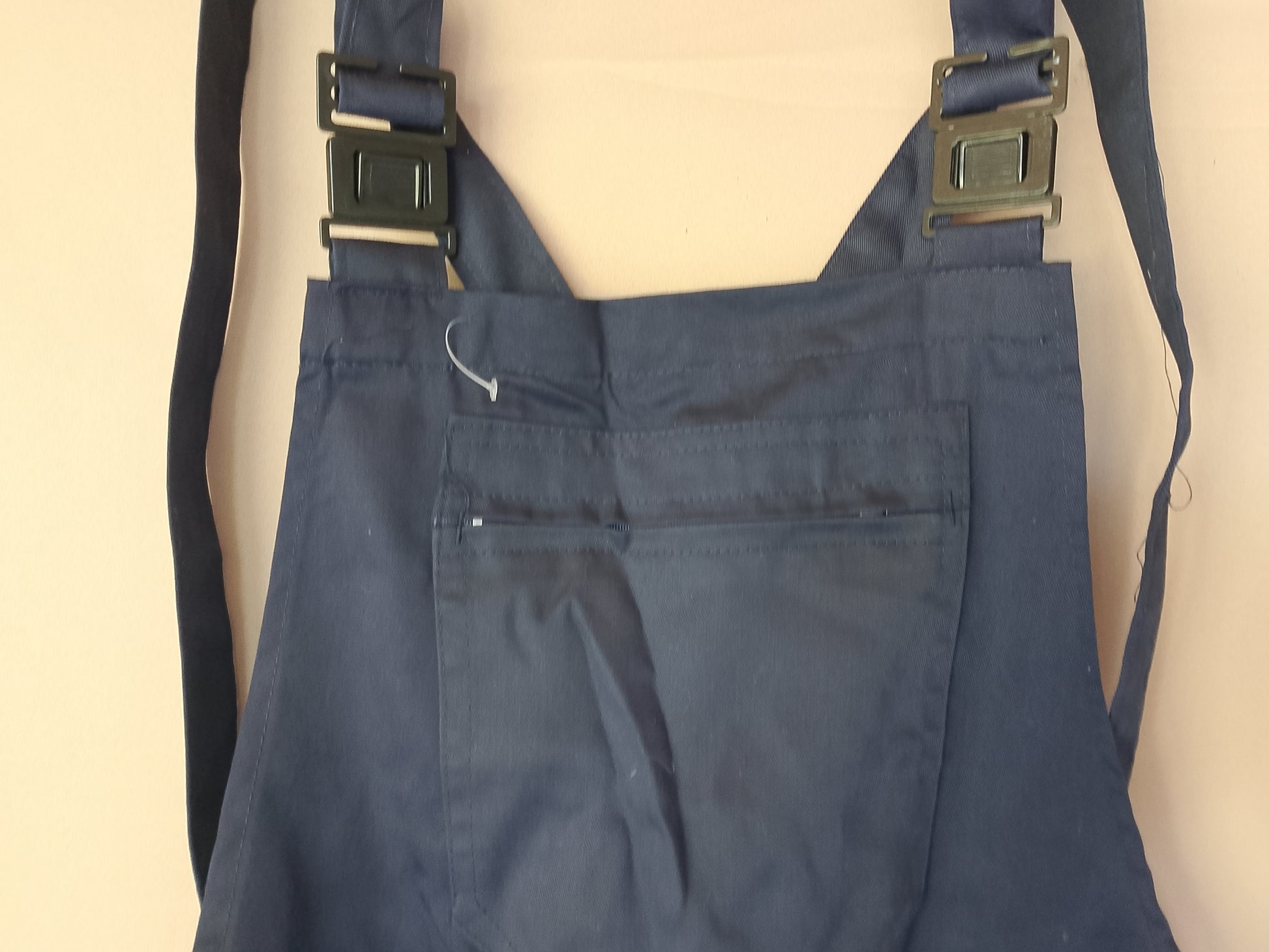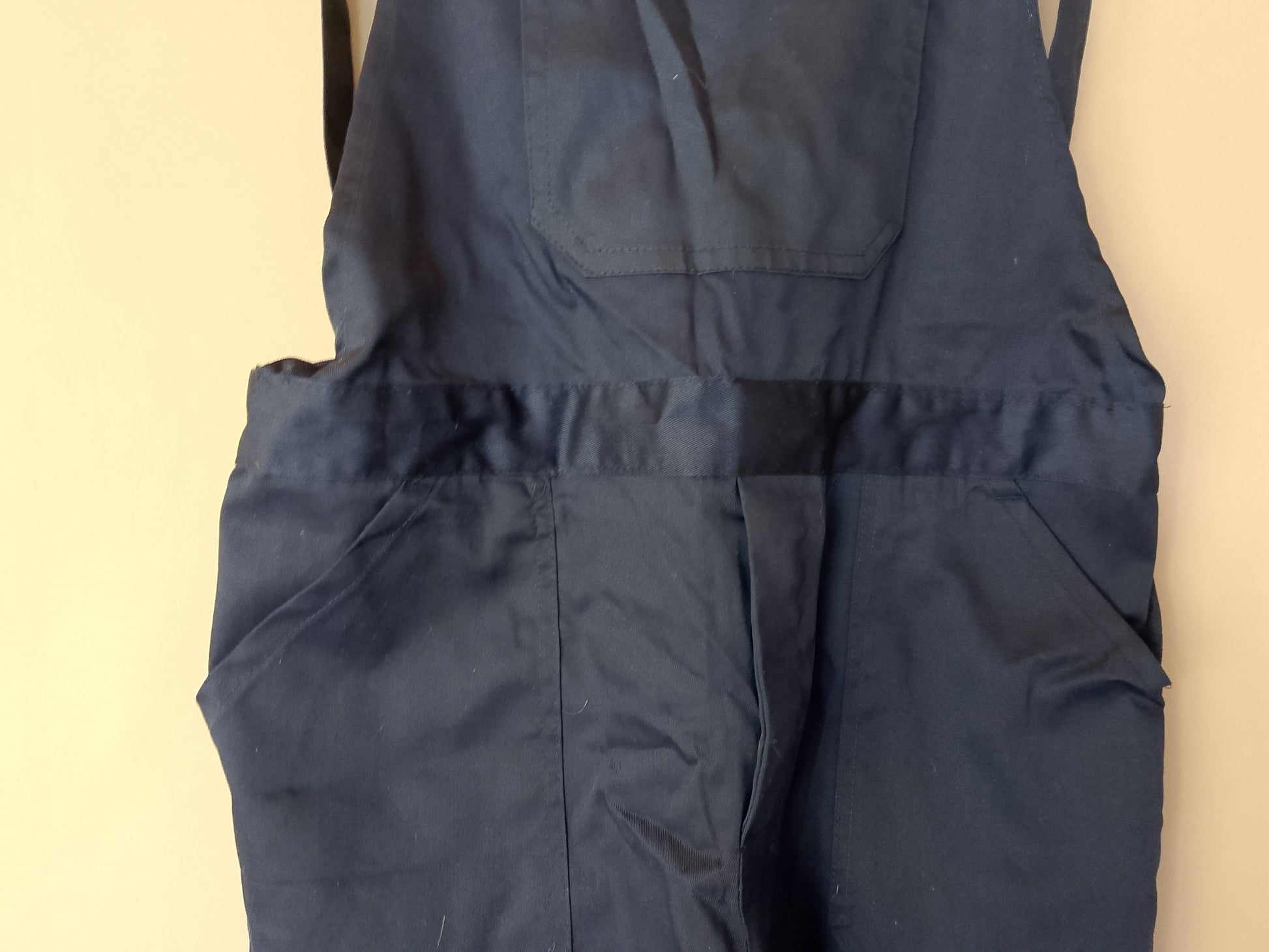 Ești gata de muncă? Această salopetă profesională Vesin este perfectă pentru a face față oricăror provocări. Cu o croială clasică, de culoare albastru închis, și curele de umăr ajustabile, oferă o libertate sporită de mișcare. Confecționată din material "TERGAL," un amestec durabil de fibre, salopeta este rezistentă și ușor de întreținut. Eticheta confirmă că este un Echipament de Protecție Individuală de Categoria I (EPI CAT.I), conceput pentru a oferi protecție împotriva riscurilor minore. Deși este un produs second-hand, salopeta se află în stare bună, fără rupturi sau pete vizibile, și este perfect funcțională. Mărimea listată este 42, echivalentul unui L - 500.