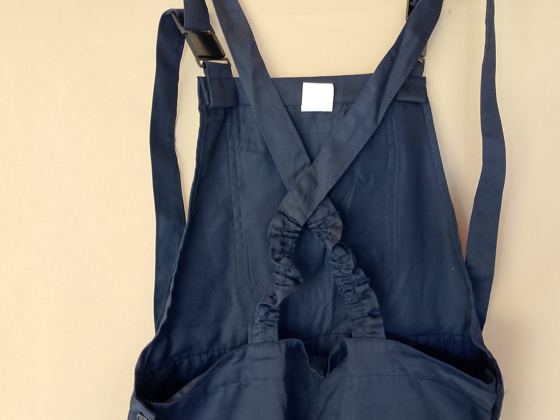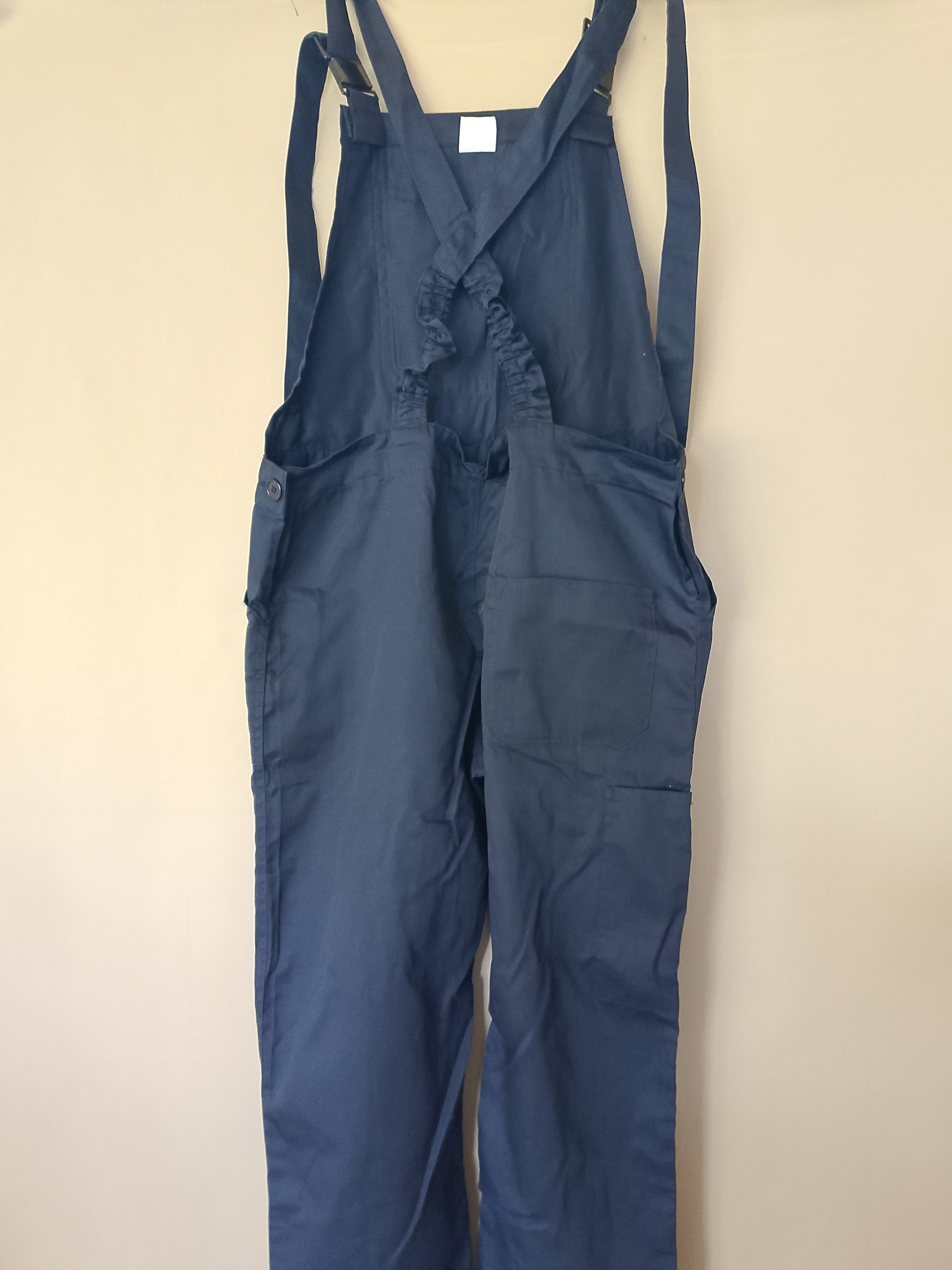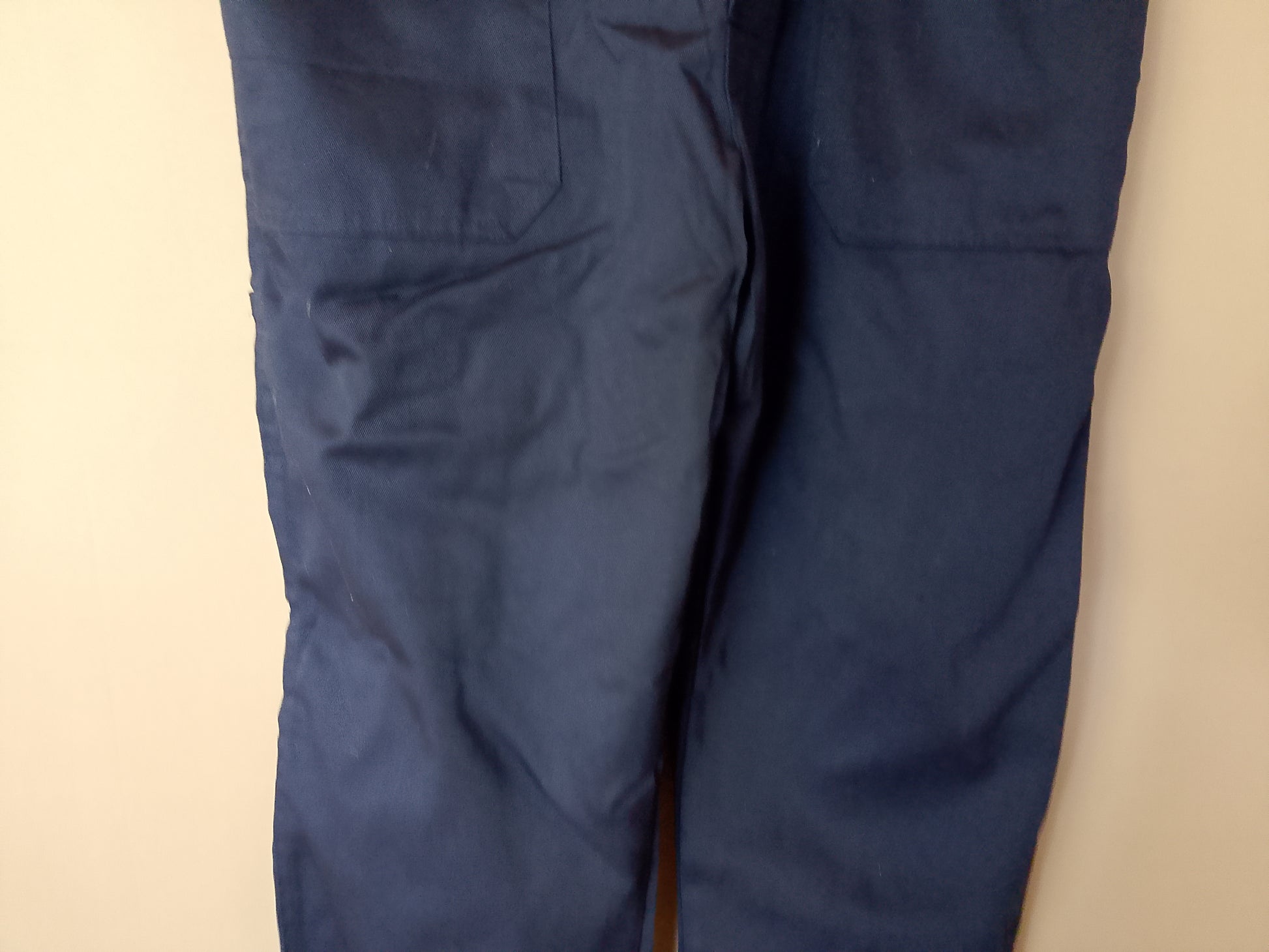 Ești gata de muncă? Această salopetă profesională Vesin este perfectă pentru a face față oricăror provocări. Cu o croială clasică, de culoare albastru închis, și curele de umăr ajustabile, oferă o libertate sporită de mișcare. Confecționată din material "TERGAL," un amestec durabil de fibre, salopeta este rezistentă și ușor de întreținut. Eticheta confirmă că este un Echipament de Protecție Individuală de Categoria I (EPI CAT.I), conceput pentru a oferi protecție împotriva riscurilor minore. Deși este un produs second-hand, salopeta se află în stare bună, fără rupturi sau pete vizibile, și este perfect funcțională. Mărimea listată este 42, echivalentul unui L - 500.